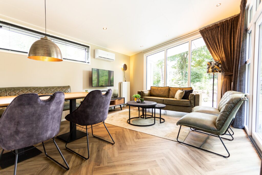 Beschikbaar op huur- of koopkavel Omschrijving Dit is de stijlvolle en comfortabele Boslodge Silva. Deze vakantiewoning is, met 2 slaapkamers, geschikt voor 4 tot 5 personen en biedt gegarandeerd een fijn verblijf midden in de Gelderse bossen. Extra genieten van de natuurrijke omgeving? De Boslodge Silva is optioneel uit te breiden met privé wellnessfaciliteiten. Dit zorgt voor het ultieme vakantiegevoel. De woonkamer, eethoek en keuken van de Boslodge Silva stralen warmte, sfeer en comfort uit. Dit maakt het een fijne plek om te verblijven en blijvende vakantieherinneringen te maken. Door de vele ramen wordt de woning feilloos verbonden met de natuurrijke omgeving. Het schuine dak geeft de woning daarbij een unieke uitstraling, zowel van buiten, als van binnen bekeken. In de slaapkamers is het heerlijk tot rust komen op comfortabele tweepersoons boxspringbedden