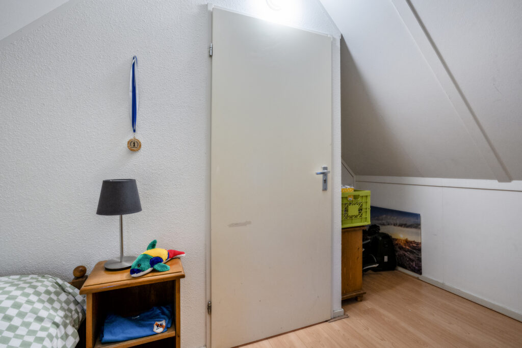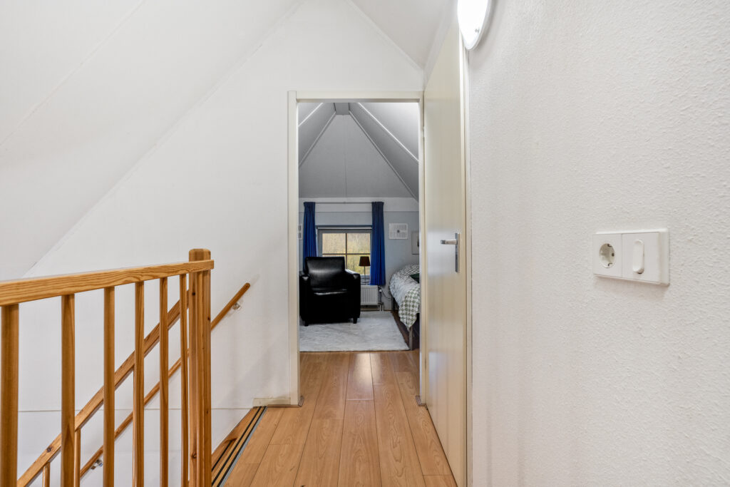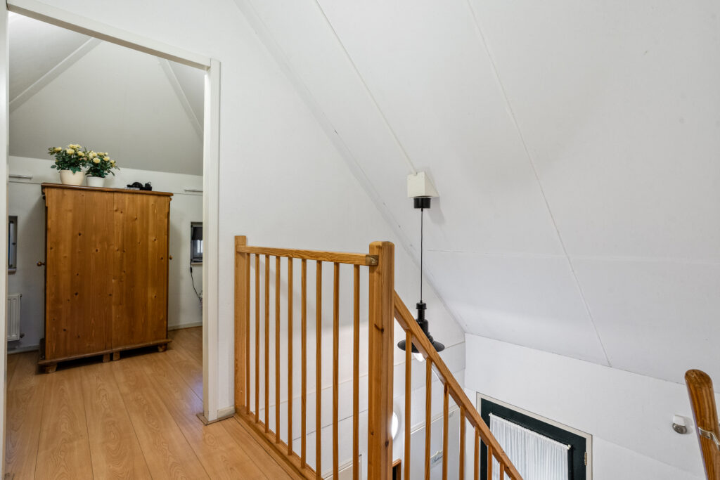 Eerste verdieping: de trap brengt je naar de overloop met de CV-ruimte. De overloop biedt toegang tot een tweetal slaapkamers.