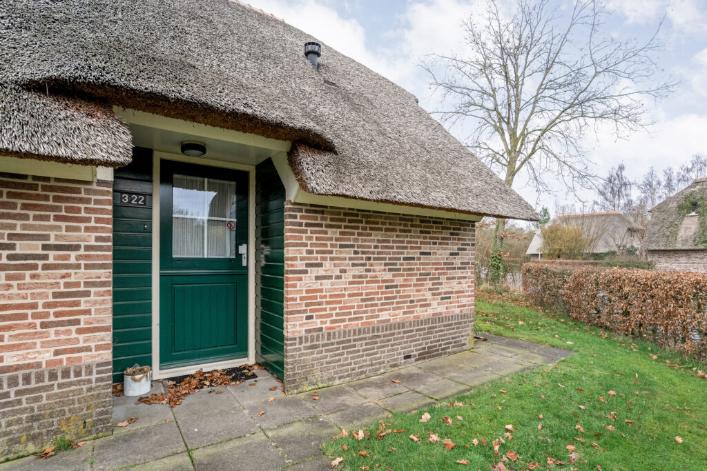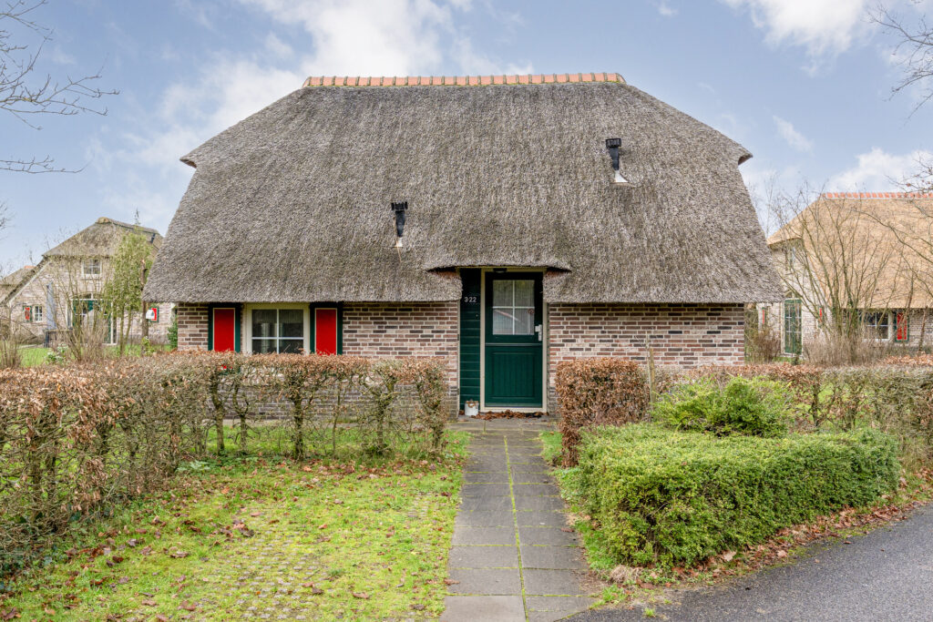 Tussen Den Ham en Vroomshoop ligt kleinschalig vakantiepark 'De Lourenshoeve'. Op dit rustige park mogen wij deze vrijstaande riet gedekte recreatiewoning van 75 m2 aanbieden!