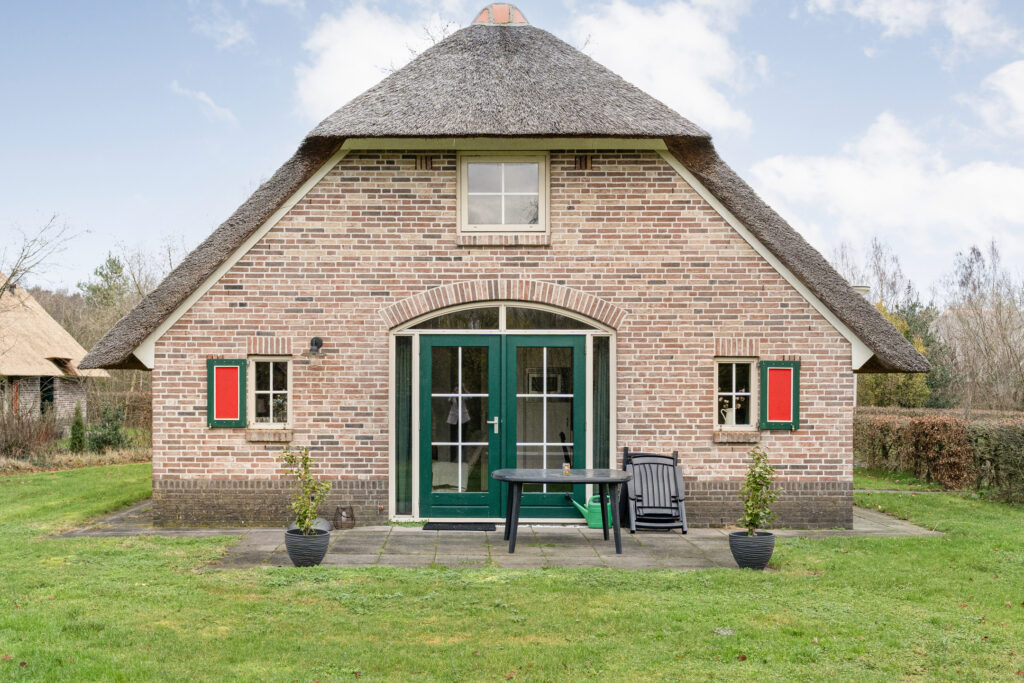 De recreatiewoning is in 2002 traditioneel gebouwd in een 'boerderij-stijl' met moderne gemakken. De woning beschikt over fraaie details, zoals de riet gedekte kap en de fraaie houten luiken.