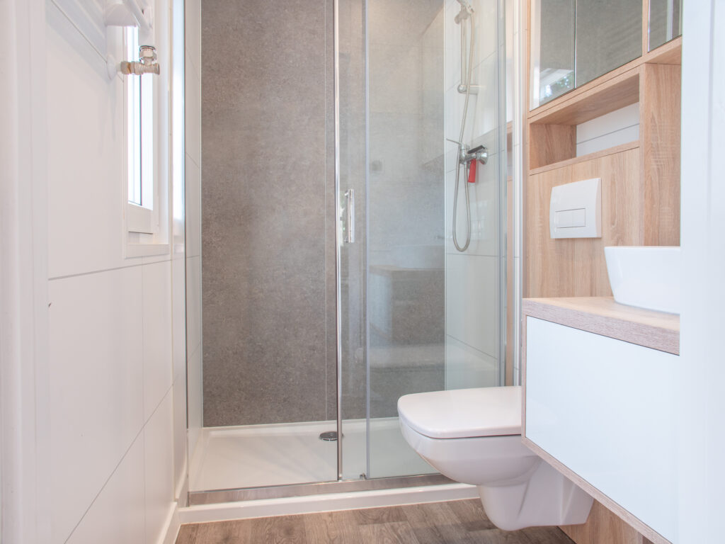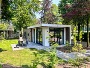 Enkel beschikbaar op huurkavel. Omschrijving De Module Noir is een eigentijdse vakantiewoning voor 4 personen, perfect voor als u op zoek bent naar optimaal comfort midden in de natuur. De grote ramen zorgen ervoor dat de woning en de bosrijke omgeving naadloos in elkaar overlopen. Door het vele natuurlijke lichtinval voelt de leefruimte daarbij warm en uitnodigend aan. Binnenkomen in de Module Noir voelt als thuiskomen. De leefruimte is modern ingericht en bestaat uit een comfortabel woongedeelte en een gezellige eethoek. Door de compleet ingerichte keuken zal het u aan niks ontbreken tijdens een verblijf in de woning. Volledig tot rust komen kan worden gedaan in de boxspring bedden in de twee slaapkamers. Verder is de woning voorzien van een tijdloze badkamer met ruime douche, toilet en wastafel. Het buitengedeelte heeft weinig toelichting nodig; het is een fijne plek midden in de Gelderse natuur