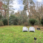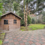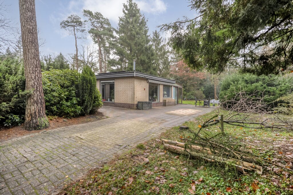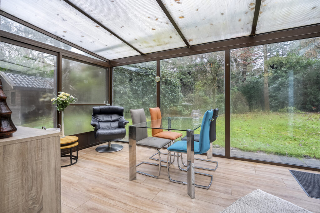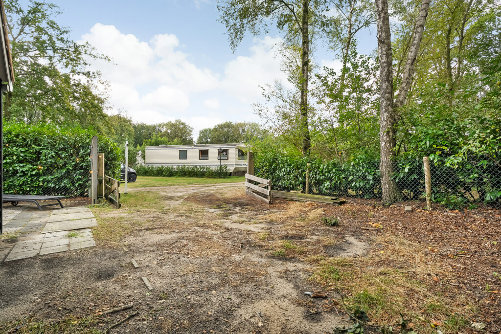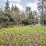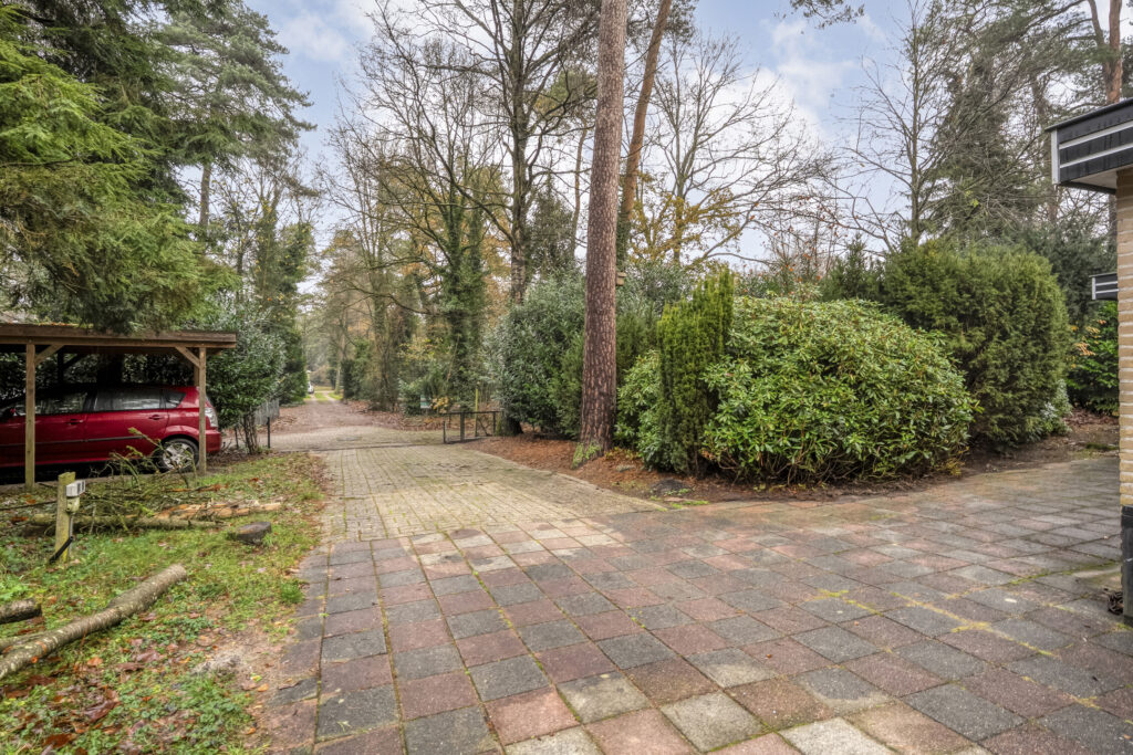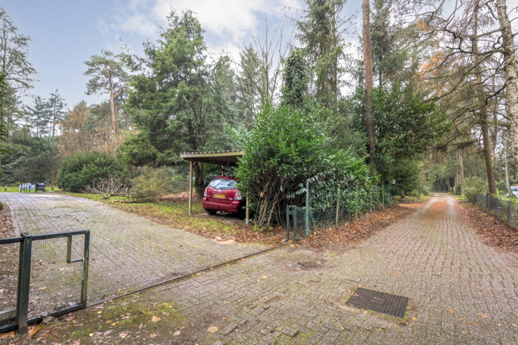 Buiten: Afgesloten entree door middel van een hekwerk, ruime tuin rondom de woning met terrassen. Bosrijke tuin met elektrapunten en een vrijstaande houten berging met elektra.