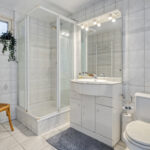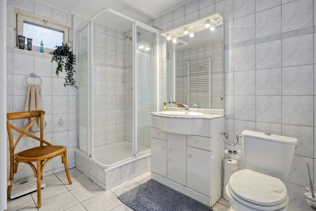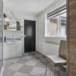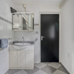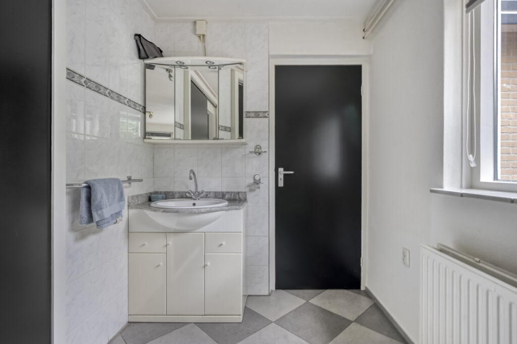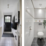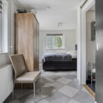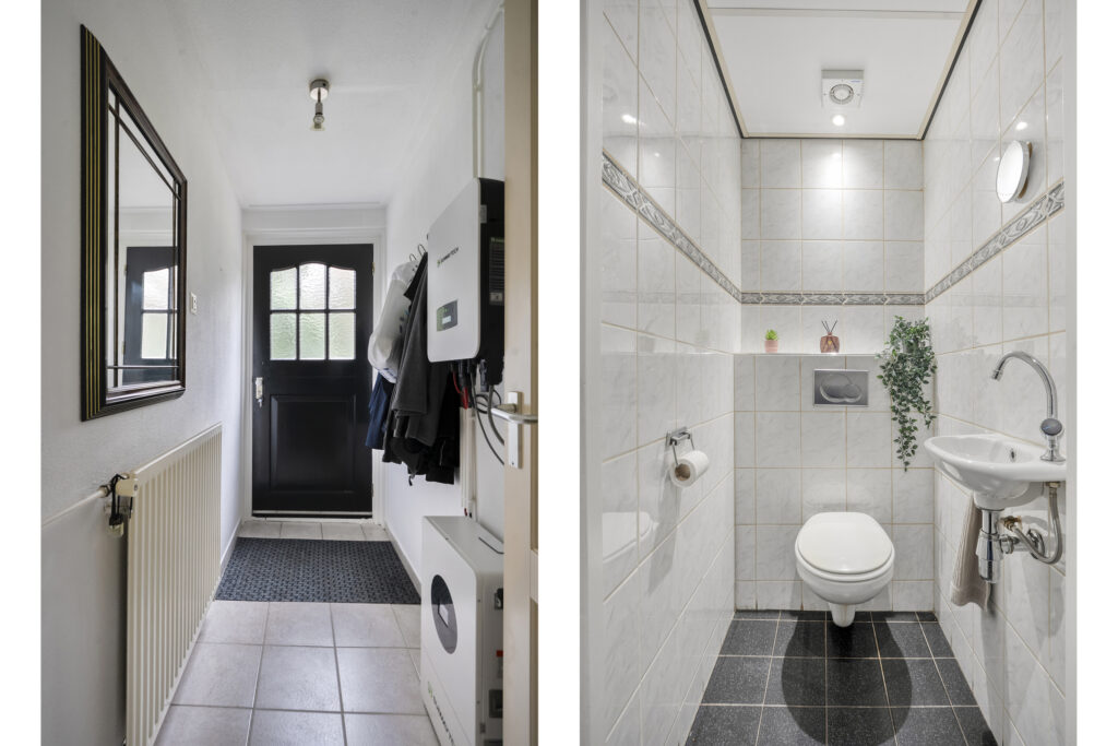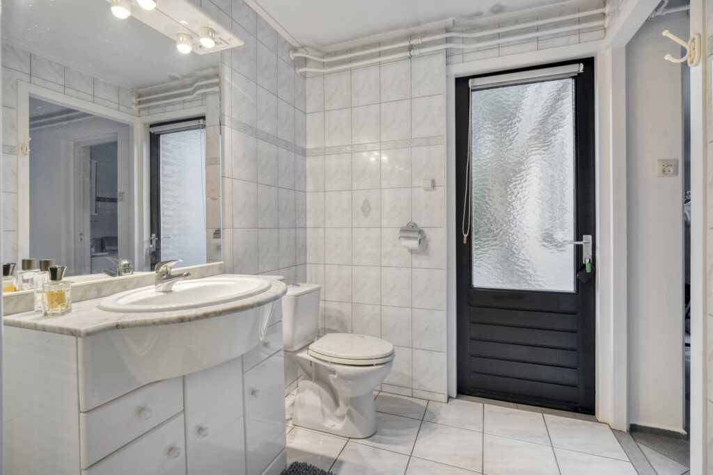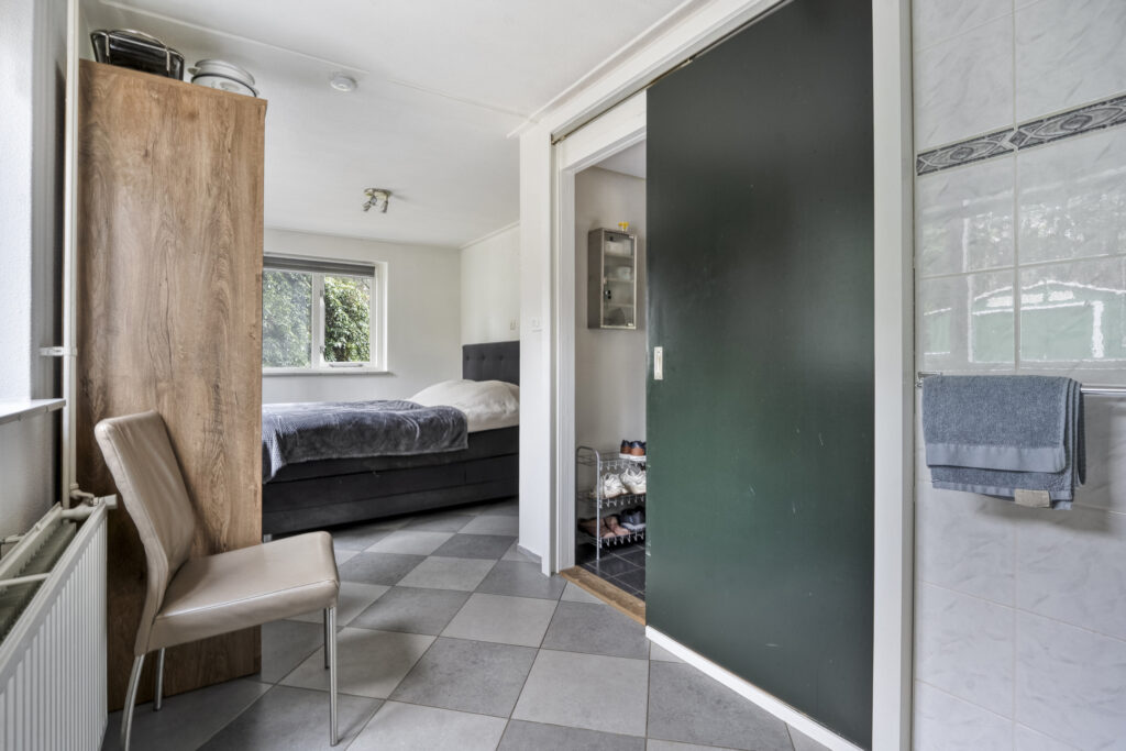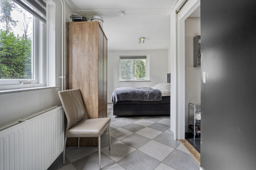 De hal met toilet is door middel van een schuifdeur bereikbaar, via hier loop je door naar de slaapkamers. Eén slaapkamer is voorzien van een wastafel, de achterste slaapkamer heeft aangrenzend een badkamer. Deze badkamer heeft een douchehoek, wastafelmeubel, toilet en deur naar buiten.