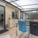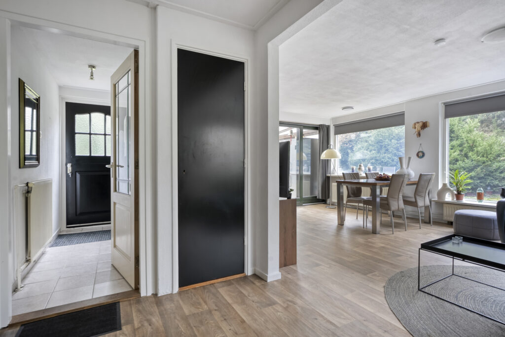 Indeling: Entree met toegang tot de woonkamer. De lichte woonkamer is voorzien van een pelletkachel en geeft toegang tot de meterkast, serre, open keuken en tussenhal.